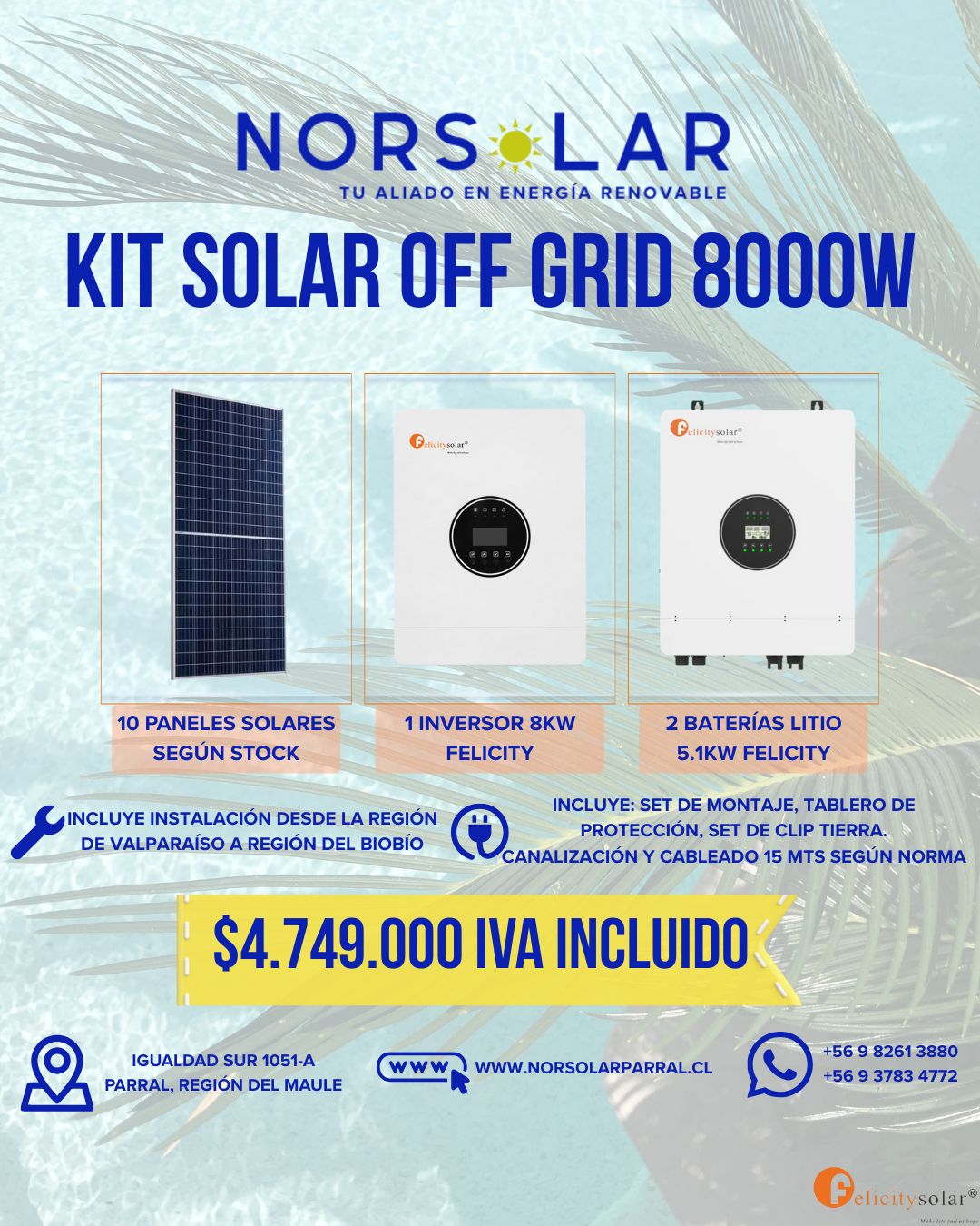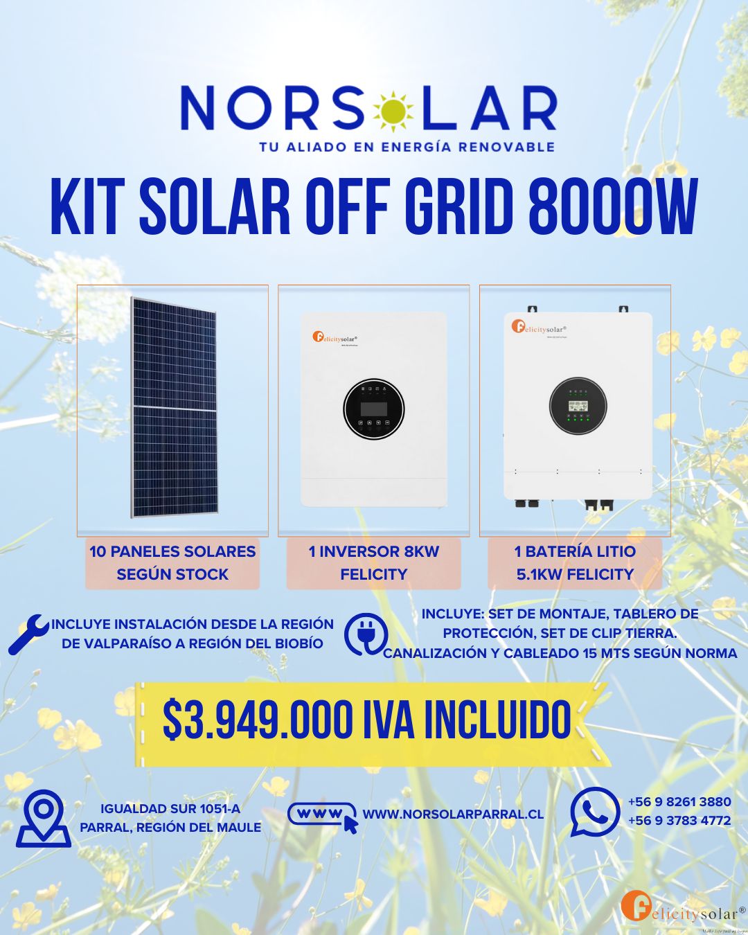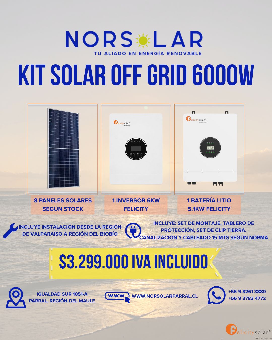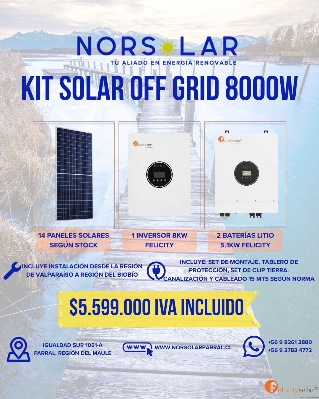 OFERTAS KITS ¿Te interesa un kit con instalación Gratis ? Hablemos Nuestros KitsRevisa cual es el Kit que mas se ajusta a tus necesidades. Instalación desde la V hasta la IX región Conjunto de montaje, cable y protecciones Instalación desde la V hasta la IX región Conjunto de montaje, cable y protecciones Instalación desde la V hasta la IX región Conjunto de montaje, cable y protecciones Instalación desde la V hasta la IX región Conjunto de montaje, cable y protecciones Instalación desde la V hasta la IX región Conjunto de montaje, cable y protecciones Instalación desde la V hasta la IX región Conjunto de montaje, cable y protecciones Síguenos Facebook-f Instagram